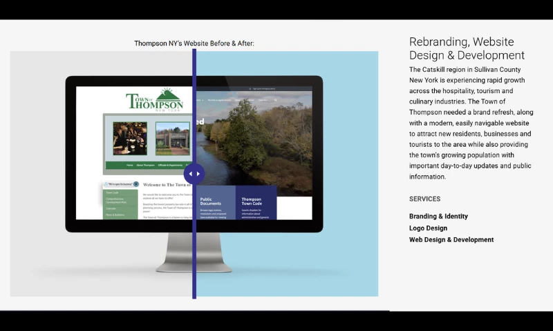 Their portfolio features collaborations with organizations such as the Children's Environmental Literacy Foundation, Hudson Valley Tourism, and the Town of Thompson, NY. Clients appreciate their straightforward approach and brilliance in concepting and design work.