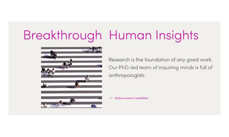 From in-depth research and analytics to strategic planning, creative design, user experience, search optimization, social media engagement and cutting-edge technology, we orchestrate every element to deliver breakthrough human experiences.
