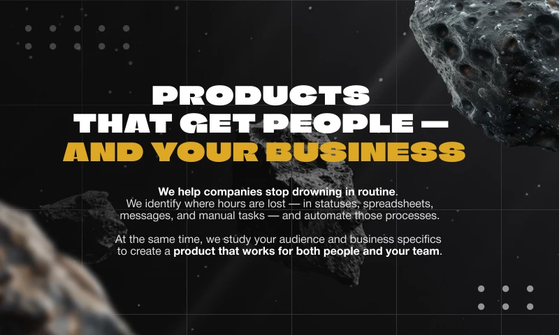 Every project starts with deep UX research and brand analysis to understand how users interact with products and what makes a company unique. Based on this foundation, we develop functional, visually engaging interfaces and reliable systems that optimize processes, save time, and open new opportunities for growth.