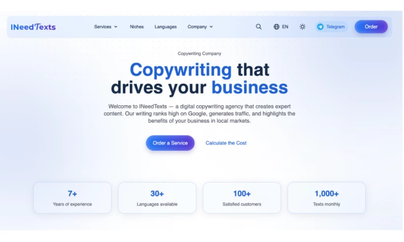 We work in 30+ languages and produce over 1,000 texts monthly for clients in iGaming, Crypto, Finance, IT, Dating and other competitive industries.