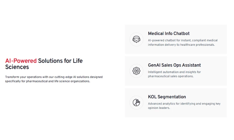 - Generative AI and Analytics: We design high performance AI tools, including Medical Info Chatbots and Sales Ops Assistants, built with clinical guardrails to ensure data integrity and eliminate hallucinations.