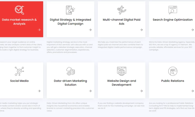 Iris is a prominent data-driven digital marketing agency based in Vietnam. We focus on providing clients with comprehensive digital solutions, including marketing, development, and strategy, by leveraging data analysis and insights.