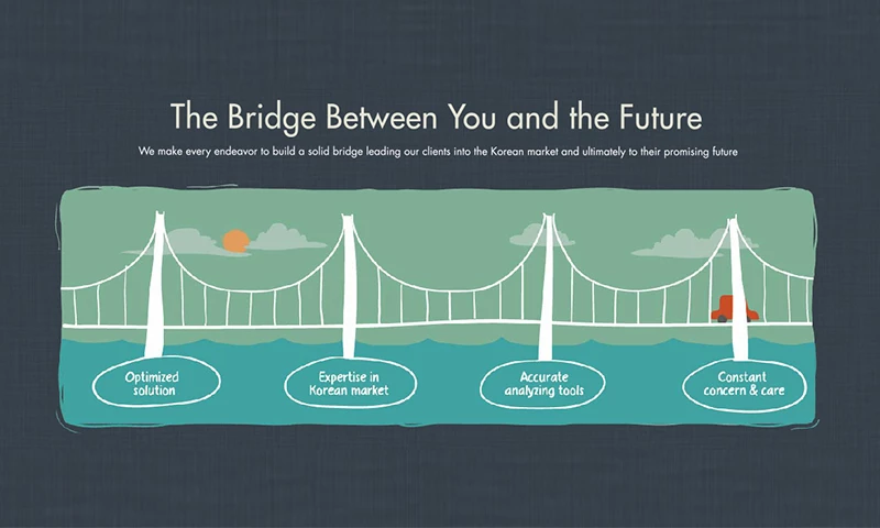 We make every endeavor to build a solid bridge leading our clients into the Korean market and ultimately to their promising future.