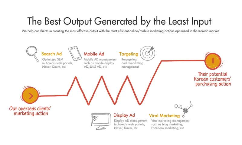 We work with overseas companies that are pioneering their way into the Korean market by providing them with optimized solutions best fitted for it through our expertise in Korea's on-and offline market trends and the Korean language, thereby enabling a means to approach their target audience without foreignness.