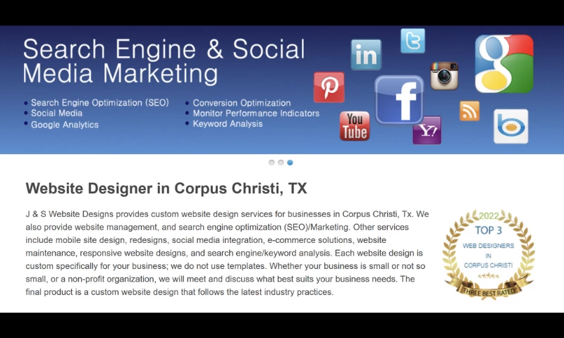 J and S Website Designs did an awesome job on my Coastal Bend Junk Pros website. The site came out clean, professional, and exactly how I wanted it. They were honest, easy to work with, and stuck to everything they said they would do. The communication was great the whole way through—they always kept me updated and got back to me fast. Anytime I needed something changed, they handled it quick and with no hassle.If you’re looking for a solid, reliable company to build your site, I definitely recommend J and S Website Designs. "Michael Briseno's Review Sourced from Google
