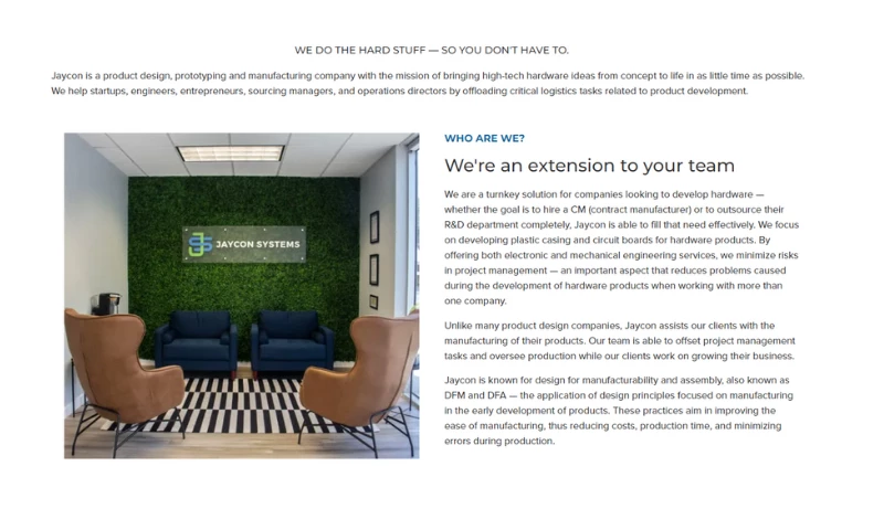 Rating: ⭐⭐⭐⭐⭐Jaycon is an outstanding manufacturing company that has exceeded all my expectations! From day one, they have been incredibly attentive to every detail, providing exceptional customer service and support throughout the entire process. They helped me bring my vision to life, creating a state-of-the-art hydroponic garden tower for Exo Hydroponics that has been a game-changer.Their commitment to quality and precision is truly impressive. Even after four years, they continue to produce my towers with the same level of excellence and care. I couldn't be happier with the partnership we've built, and I highly recommend Jaycon to anyone looking for a reliable and innovative manufacturing partner.Thank you, Jaycon, for your unwavering dedication and for helping Exo Hydroponics thrive!Nicole MadeuxFounder "Nicole Suzanne's Review Sourced from Google