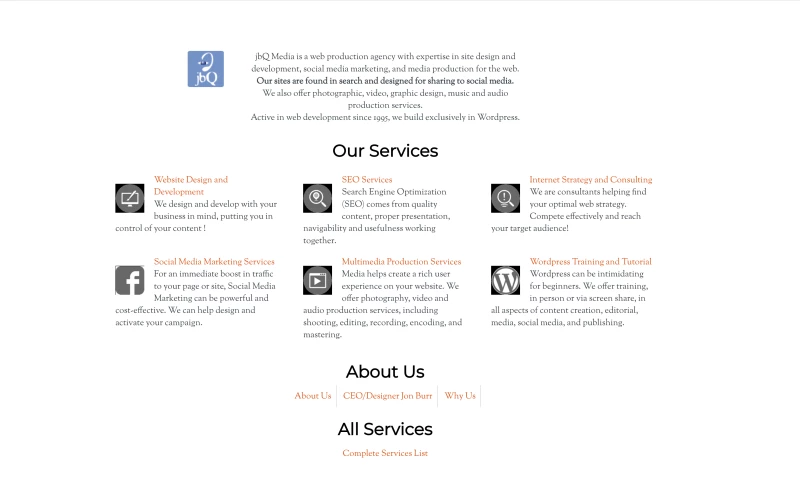 jbQ Media, originally based in NYC, has relocated to Boston's Bulfinch Triangle near North Station, serving customers locally and globally. Proprietor Jon Burr is a musician, composer-arranger, and digital media maven, having been involved in music production since the '90s, transitioning to internet marketing, design and media, and became a passionate advocate for Wordpress websites' power to connect creatives and small business with their markets. Our clients have included musicians, actors, non-profits and corporations.