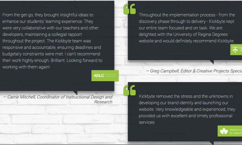 Kickbyte is a full service digital solution agency. We are a proud Canadian company, headquartered in Edmonton, Alberta. We work with customer across Canada and the USA across all industries including banking, government, education, energy, technology and more. We are an inspired group of industry experts and innovators with proven track records in end-to-end web content management and digital marketing solutions. Our passion is everything digital from strategy, design, development, to marketing. Our purpose is helping our clients grow their brand, better understand their audience, and connect with their customers in engaging and meaningful ways.