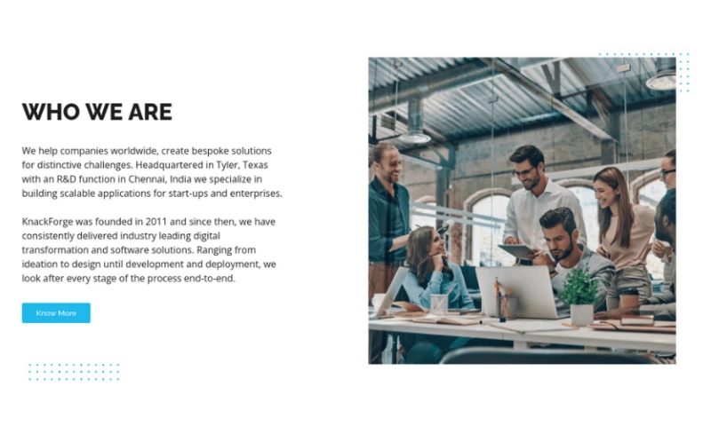 KnackForge was founded in 2011 and since then, we have consistently delivered industry leading digital transformation and software solutions. Ranging from ideation to design until development and deployment, we look after every stage of the process end-to-end.