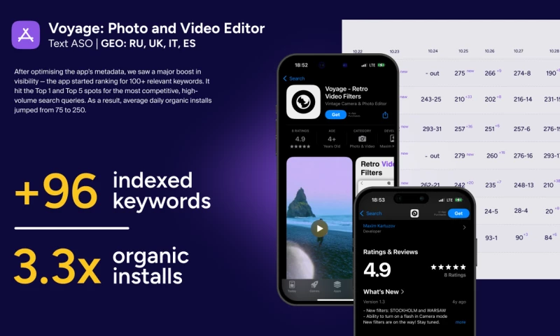 We offer a comprehensive range of mobile growth services, including textual and visual App Store Optimization (ASO), keyword promotion, and reputation management. Through in-depth keyword research, optimized metadata, and compelling visual assets, LoveMobile improves both app discoverability and conversion rates. Our strategies also focus on boosting downloads and building user trust by improving app ratings and highlighting positive reviews to potential users.