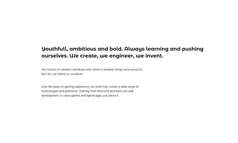 Our Mission is to help ambitious people create world-class software that drives positive change worldwide. To achieve this goal, we create agile teams and utilize cutting-edge technologies to create the best solutions and experiences on the market, including web and mobile apps, video games, 3D experiences, and AR/VR solutions.