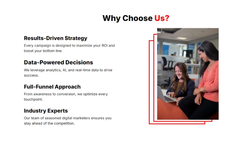 Our mission is simple: To help businesses maximize their marketing ROI and achieve sustainable revenue growth. We believe that marketing should be more than just brand awareness-it should be a powerful tool to generate leads, increase sales, and scale businesses efficiently.
