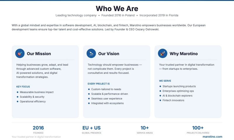 Founder and CEO of Marotino, a global technology company delivering advanced software development, AI, blockchain, and fintech solutions. As a visionary entrepreneur, he has built Marotino into a trusted international partner helping businesses innovate, scale, and succeed in the digital economy.