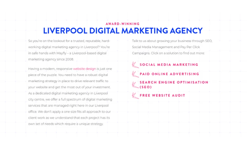 John, Liam, and the whole team at Mayfly are nothing but professional, friendly, and extremely knowledgeable. The cost is also really affordable for the level of skill and expertise you're getting, and they're always incredibly fast to action any changes we request on our website. Whether you're looking for digital marketing services or anything to do with website design and development, I'd recommend Mayfly to anyone. "Aimee Taylor's Review Sourced from Google