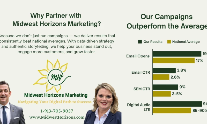 What sets us apart is our unique blend of big-agency strategy with small-town dedication. We build long-term partnerships by combining cutting-edge tools (including AI-driven analytics) with personal, local expertise. Whether youre a small business looking to reach new customers or an organization planning a large-scale campaign, Midwest Horizons Marketing ensures your story is seen, heard, and remembered.