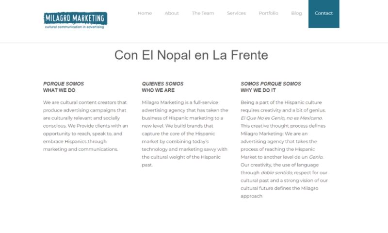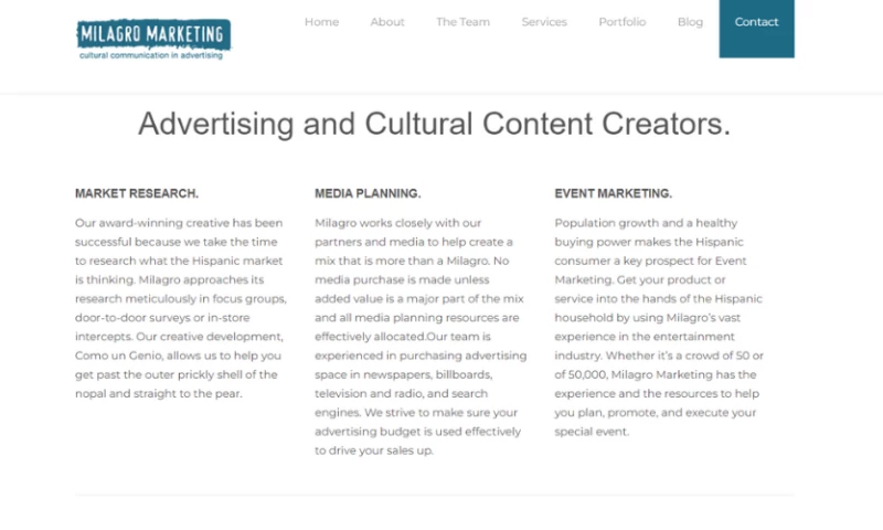 Milagro Marketing is where culture and creative intersect to create advertising communication that lets the consumer be introduces to a better understanding our our culture, with all it's color and history, with eyes rooted in the present.