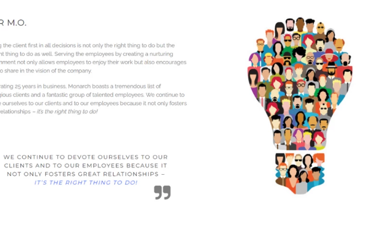 At Monarch, we strive to truly understand each client’s brand promise. We use our expertise to offer our clients integrated marketing solutions to achieve their goals and objectives.Â