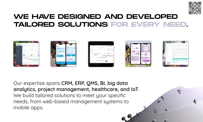 We have experience in creating custom web-based management systems such as CRM, ERP, QMS, big data analytics, project management, and healthcare data processing, as well as general custom web apps (e.g., configurators, analytics, previews). Additionally, we develop iOS and Android mobile applications for data consumption, in-app purchases, and IoT device management. Thanks to our partnerships, we offer additional services related to UI/UX design and financial incentives for research and development opportunities.