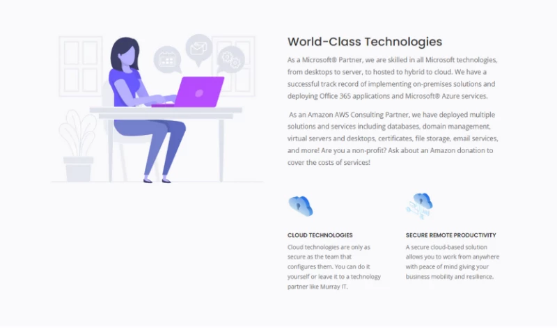 At Murray IT, we use only technologies that have passed the most rigorous vendor and risk management reviews to give you a choice in where your data is stored and how it is available. Our team members have decades of experience in their fields and often give that expertise to local non-profits.