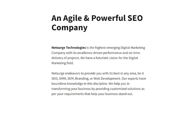 With its focus on excellence and on-time project delivery, Netsurge Technologies is the most promising new name in digital marketing. For the area of digital marketing, we have a futuristic vision.