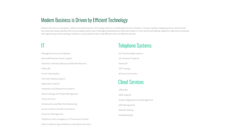 The best business technology solutions are always tailored to meet your specific needs and business challenges. Network Services can eliminate the stress, the need for technical staff and many of the associated costs of delivering those solutions to your business.