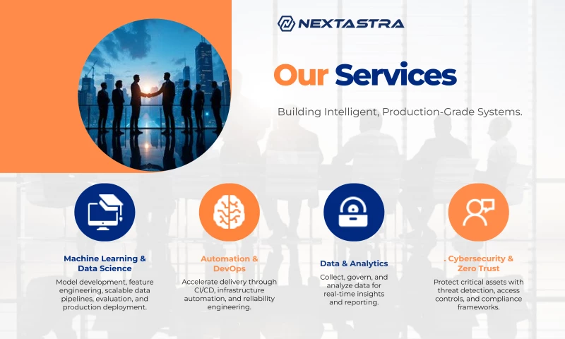 We specialize in transforming complex business workflows into AI-powered automation systems that improve speed, accuracy, compliance, and decision-making. At NextAstra, we dont just build models we deliver real production-grade solutions that create measurable ROI.