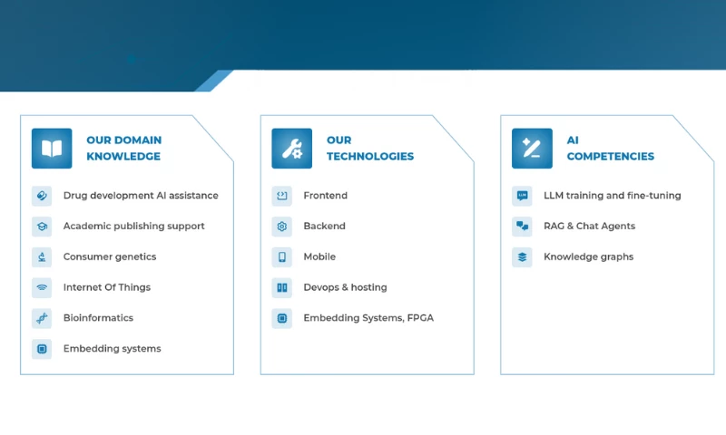 Offsiteteam's core focus revolves around technology-intensive projects that demand meticulous business and technical analysis, prototyping, and engineering. By offering comprehensive solutions, Offsiteteam addresses clients' challenges, particularly those with conceptual ambiguities or projects that have encountered repeated setbacks, ensuring a path forward that aligns with their objectives and vision. Offsiteteam's services encompass:- AI and Machine Learning