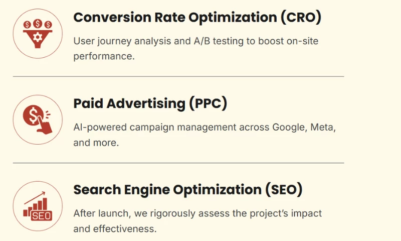 What sets us apart is our hands-on partnership approach. We act as an extension of your team, providing transparency, fast execution, and honest feedback. We don't chase vanity metrics or short-term hacks; we focus on systems that scale and sustainable growth.