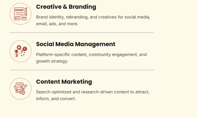 We specialize in working with startups, D2C brands, SaaS companies, and businesses ready to invest in long-term growth. From building brand foundations to scaling performance-driven campaigns, our team delivers clarity, impact, and momentum.