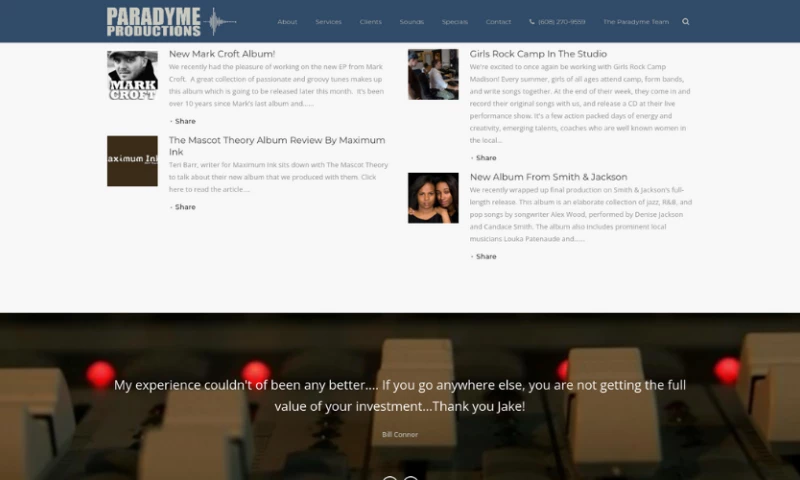 Paradyme Productions is a wonderful recording studio and Jake is amazing! I have recorded at various places throughout the years and Jake is not only the consummate professional, but an all around great guy who makes you feel welcome and relaxed - key traits to have when you may be nervous in the studio! Can't recommend Jake and Paradyme Productions highly enough! "Greg Matysik's Review Sourced from Google