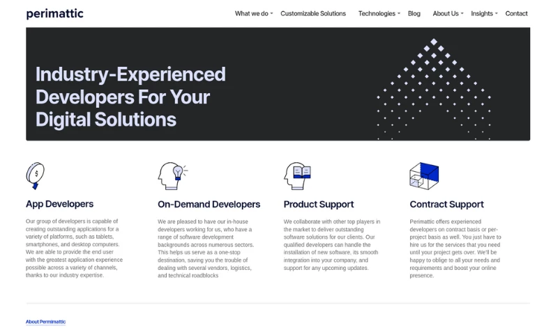 With a commitment to overcoming challenges such as shifting requirements and budget constraints, Perimattic employs proven project management methods. Their goal is to see every project through successfully, acting as a true technology partner for their clients.