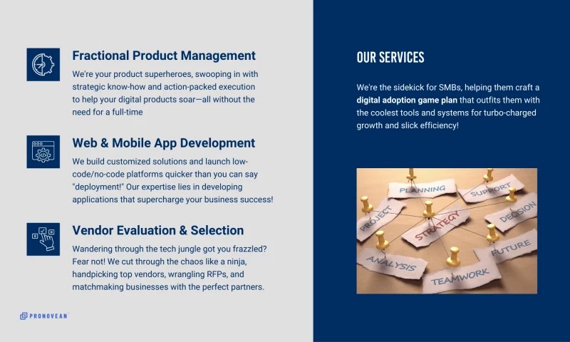 At Pronovean, we help SMBs not just adapt but thrive by delivering tailored, innovative solutions to drive growth and resilience.