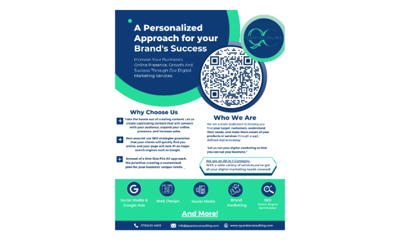 Quarata Consulting offers all-in-one services, including SEO, PPC, BRANDING, WEB DESIGN, and SOCIAL MEDIA MARKETING. They believe that digital marketing and brand development should never be separated, and their mission is to help businesses develop their brands and find their voice in the market. They pride themselves on being proactive and problem solvers. They analyze every task and offer new ideas if they see a solution that can make their clients save time and money.
