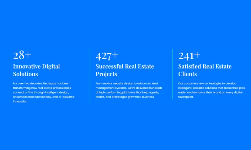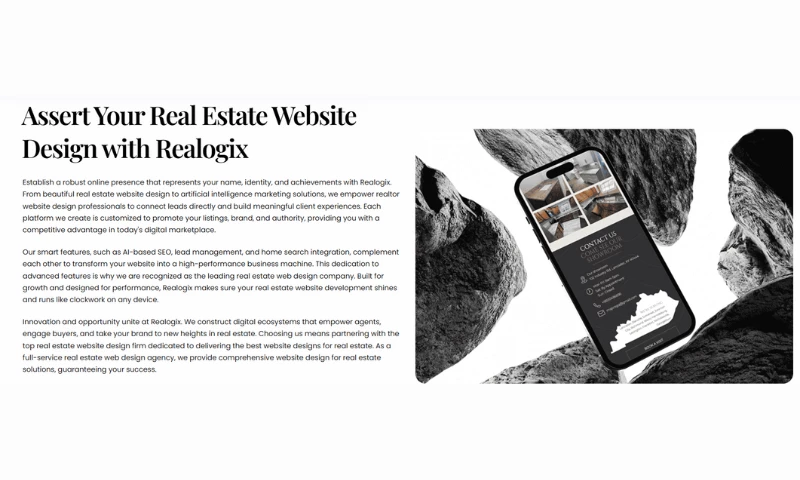 Along with web development, Realogix is recognized as a trusted real estate SEO company, delivering targeted optimization strategies that improve search rankings and attract consistent organic traffic from local buyers and sellers. Their services also include lead generation for real estate, using advanced tools, CRM automation, and AI-powered features to convert website visitors into qualified clients.