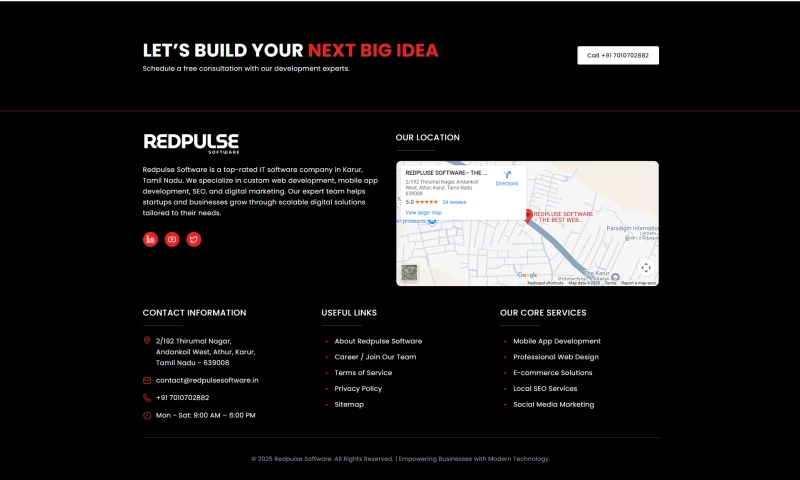 2/192 Thirumal Nagar, Andankoil West, Athur, Karur, 639008, Indiahttps://redpulsesoftware.in