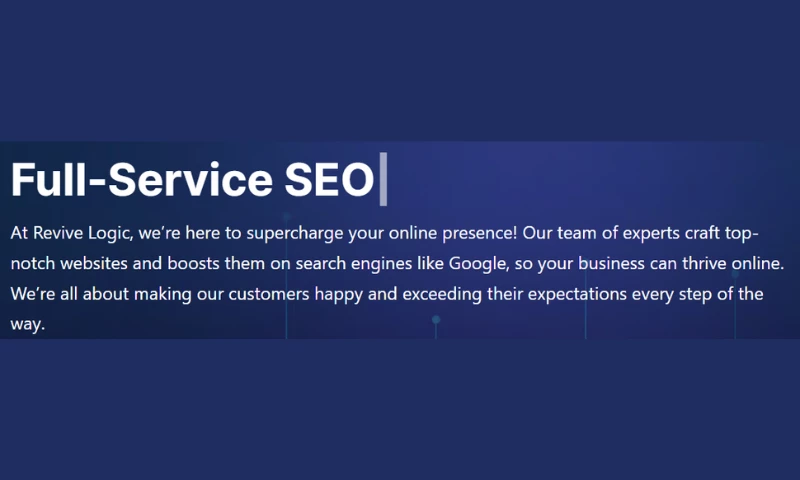 Revive Logic is a Montgomery Digital Marketing Agency, were here to supercharge your online presence! Our team of experts craft top-notch websites and boosts them on search engines like Google, so your business can thrive online. Were all about making our customers happy and exceeding their expectations every step of the way.