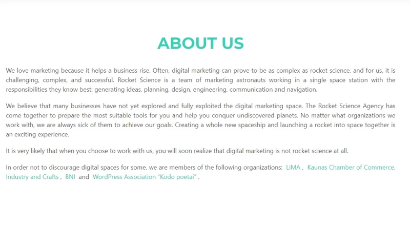In order not to discourage digital spaces for some, we are members of the following organizations: LiMA , Kaunas Chamber of Commerce, Industry and Crafts , BNI and WordPress Association "Kodo poetai" .