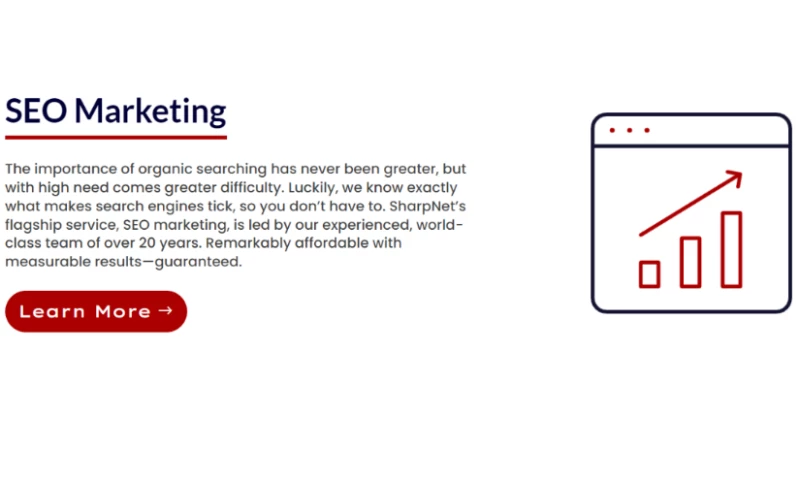 At SharpNET, we take an ethical and comprehensive approach to SEO marketing. Our strategies cover all key areas of SEO, including content optimization, business profiles, local SEO, content marketing, and social media. We focus on driving conversions and sales, not just clicks or impressions; our results speak for themselves. Many of our clients see a noticeable improvement within the first month of service, which is faster than most competitors can achieve.
