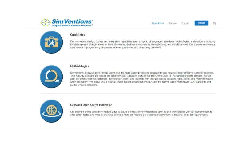 Headquartered just south of Washington, DC, near historic Fredericksburg, VA, SimVentions has grown from three employees and one contract into a thriving small business with multiple contracts supporting the Navy, Army, Marine Corps, and various joint Department of Defense (DoD) agencies.