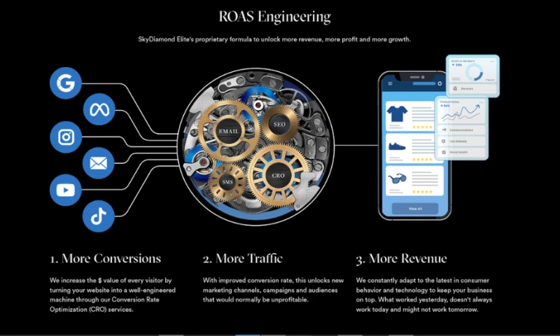 SkyDiamond Elite provided conversion rate optimization services for our medical device manufacturing company. Its team spearheaded a complete redesign and scaling of our Google Ads, implemented effective email marketing campaigns, and crafted a robust digital marketing strategy. We were thrilled with the results, which translated into impressive returns on ad spend (ROAS) and consistent month-over-month growth in eCommerce revenue. SkyDiamond Elite's communication, with weekly virtual meetings and prompt email responses, was excellent. We were impressed by the agency's professionalism and commitment to delivering exceptional results. "Project Name: ROI Revolution