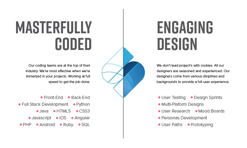 Development:Â Â Full Stack Web Development. Responsive Web, Native and Cross-Platform Mobile Development, Microservices and API Design and Development, Blockchain