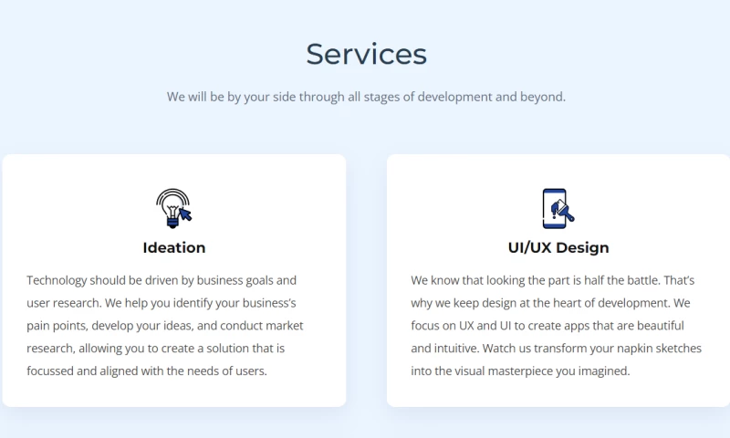 Our team is comprised of highly skilled and passionate coding ninjas who work closely with clients to evolve their app ideas. We are an end-to-end work with our clients on evolving their ideas, creating mock-ups, and developing and deploying apps. Our app development process involves careful attention to detail, and meticulously tailored design to ensure an intuitive user experience and the highest degree of client satisfaction. Browse our website to learn more about our services and how we can help you achieve your goals.
