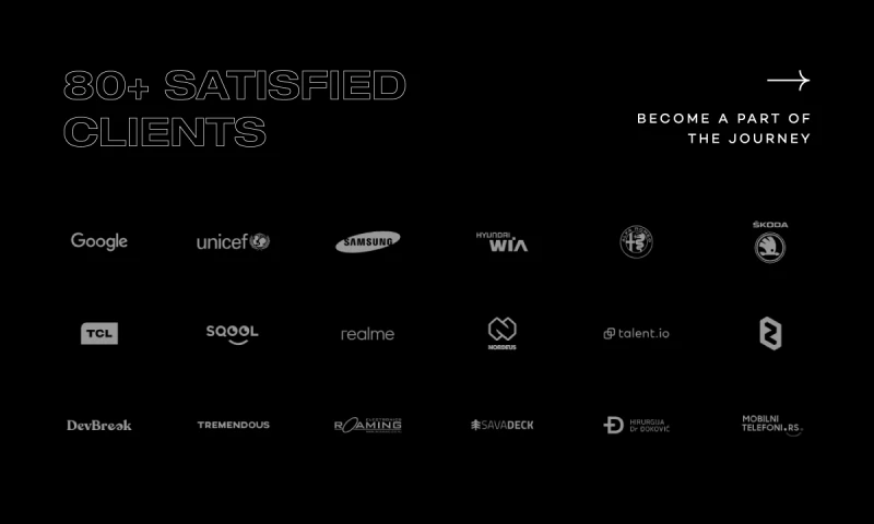 Our small yet skilled team brings over 14 years of experience, having collaborated with esteemed clients like Google, UNICEF, Samsung, Hyundai, Alfa Romeo, TCL, Realme, and more.