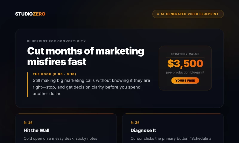 Our process starts with a free Video Blueprint - a 1-page PDF that maps the exact screen flow, hook, narrative beats, and CTA for your product video. Most agencies ask for a brief. We deliver one instead.