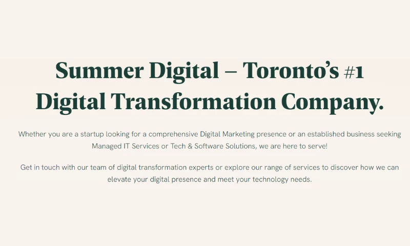 Summer Digital, a digital marketing agency based in Toronto, excels in helping businesses optimize their online presence through data-driven insights, engaging content, and compelling video narratives. Committed to their clients' success in the evolving digital landscape, it employs a result-driven approach, cutting-edge tools, and a collaborative mindset.