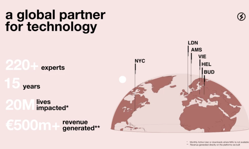 As pioneers of redefining, diversifying, and protecting businesses, we have delivered over 250 digital products for our partners globally, ranging from major mobile banks to solutions powering successful startups. Our team's products have earned us recognition as one of the fastest-growing tech companies in Europe according to Financial Times (FT1000) and Deloitte (Fast50) for two years running.