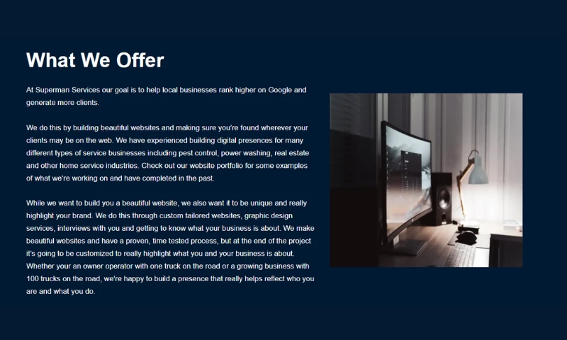 At Superman Services our goal is to help local businesses rank higher on Google and generate more clients.