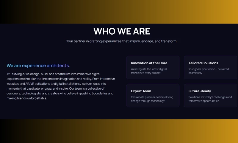 With a blend of technical expertise, creative innovation, and strategic thinking, TekMingle Experiences continues to empower businesses to stand out, connect deeper, and grow faster in the digital era.