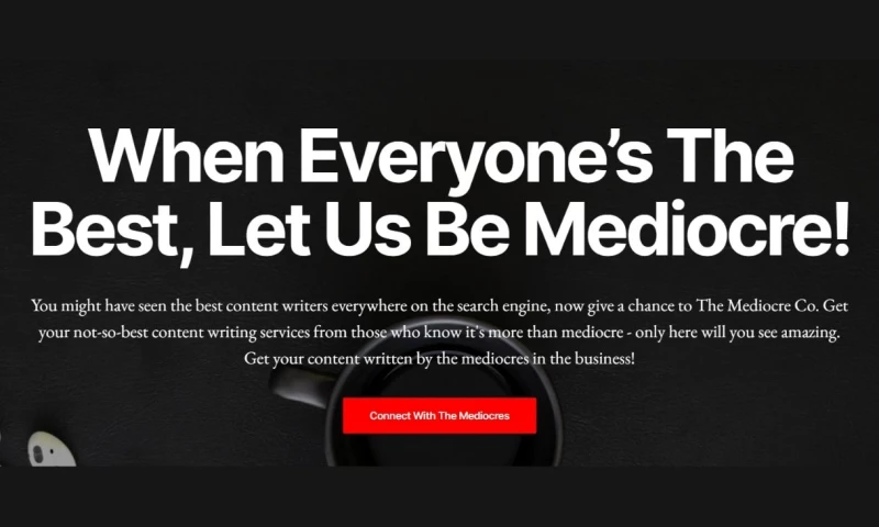 Welcome to The Mediocre Co, where we proudly embrace our averageness and deliver services that are just okay. We're not here to impress you with fancy jargon or mind-blowing innovations. Instead, we specialize in providing run-of-the-mill solutions that get the job done, more or less.