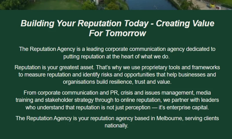 At The Reputation Agency, we know reputation is your greatest asset. Were Australias best and most innovative corporate affairs and reputation management agency dedicated to building, protecting, and amplifying reputation value.Â